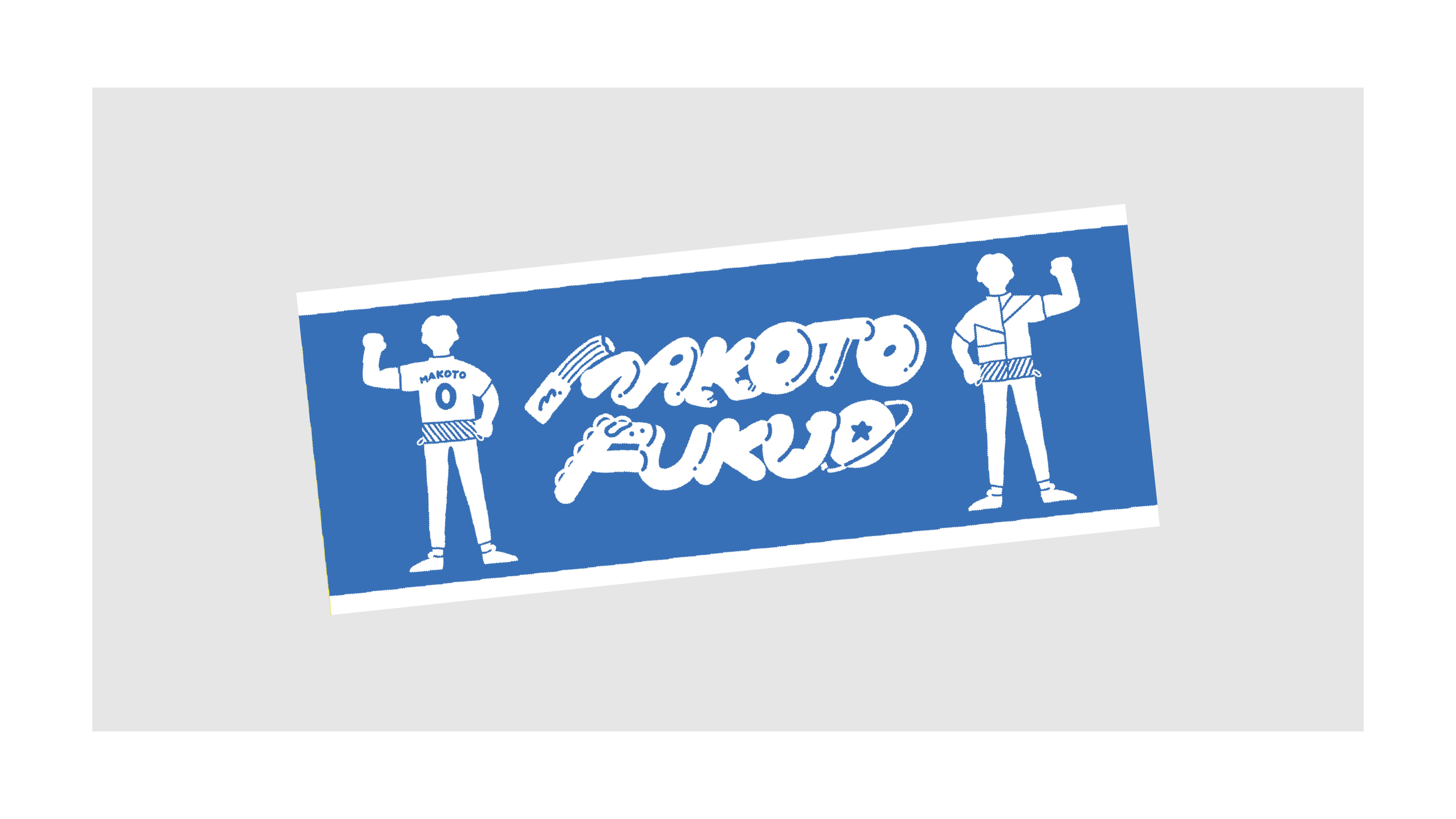 オリジナルロゴには本人に関連するモチーフを、サイドにはげんきウェアを着た福尾のシルエットを入れています。あえて配色はシンプルに、販売したTシャツとも相性のいいブルーを選びました。